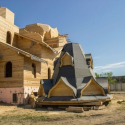 Фотохроника строительства Богоявленского храма. 24 июня 2016 года24 июня 2016 поднят шатер на колокольню Богоявленского храма.