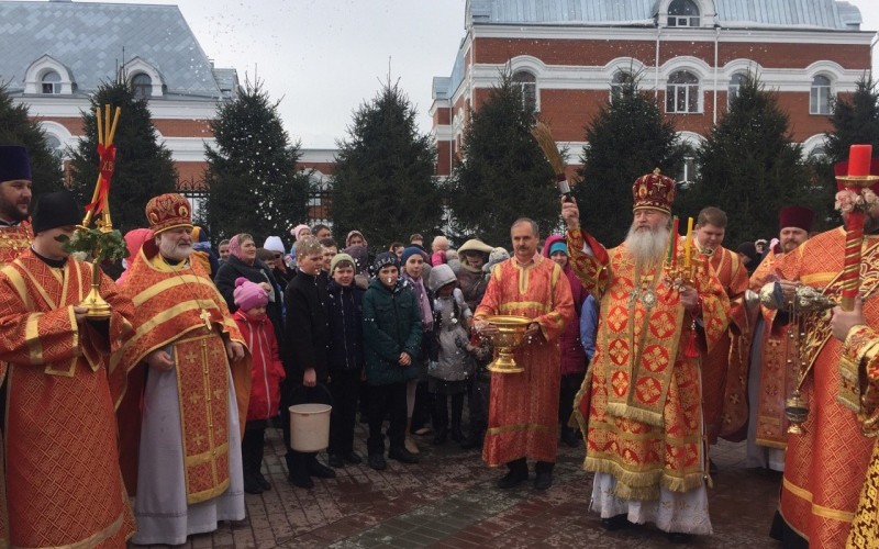 12 февраля Митрополит Новосибирский и Бердский Тихон совершил молебен в нижнем храме Преображенского кафедрального собора г. Бердска - в честь Трех великих святителей.