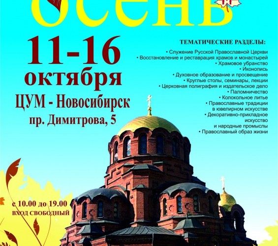 Приглашаем Вас принять участие в VIII межрегиональной выставке «ПРАВОСЛАВНАЯ ОСЕНЬ», которая будет проходить при поддержке Новосибирской митрополии и Правительства Новосибирской области.